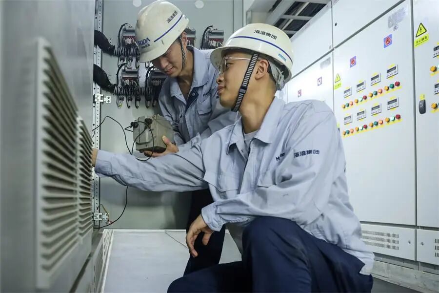 按照职责分工,吕江民和张文波穿梭在各配电室之间,逐一检查高压柜、变压器运行状态,记录仪表数据,排查每一处接线端;刘鹏和宿盟强则深入厂区,从小苏打生产线电机,到氯化钙、硫酸钾车间的用电设备,一遍遍调试、加固,覆盖到每一个细节。