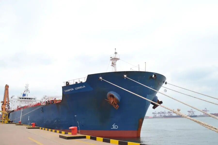11月27日的黄昏,董家口港被暖融融的暮色轻拥,“科妮莉亚”轮伴着最后一抹霞光平稳靠泊,11月27日夜晚,“科妮莉亚”轮完成输料臂对接,海湾化学生产的液碱以每小时数百方的流量注入船舱。这艘巨轮此次装载的4.36万吨液碱,单船运量相当于过去四艘万吨轮之和,创下企业烧碱单次出口最大纪录。